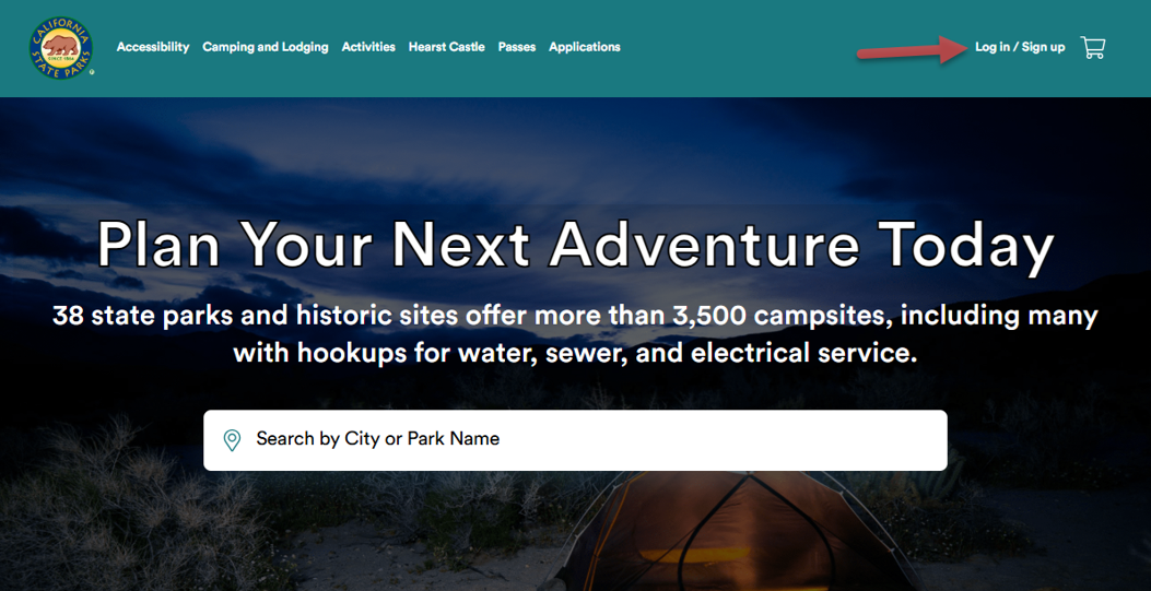 Select 'Login/Sign Up' on the upper right corner of the reservecalifornia.com homepage. Shown here:
